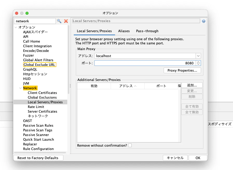 代わりにOWASP ZAPを推奨されたため、導入と設定を進めました。