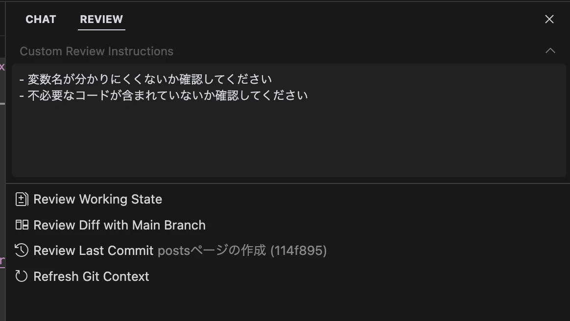 - Review Last Commit: 最後に行ったコミットをレビュー