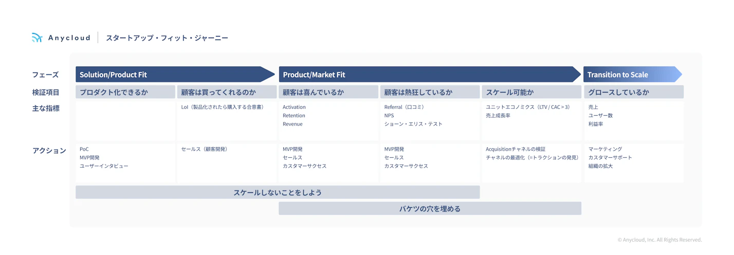Anycloudでも、クライアントさんのサービス立ち上げのご支援において、PMFへの道のりを意識して着実なご支援を目指しています。