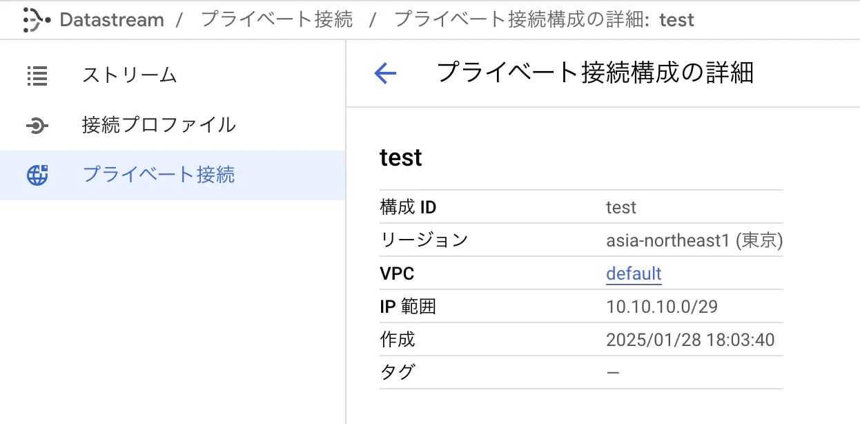 上記の投稿に書かれていた手順に従い、プライベート接続構成を適当に作成してみました。